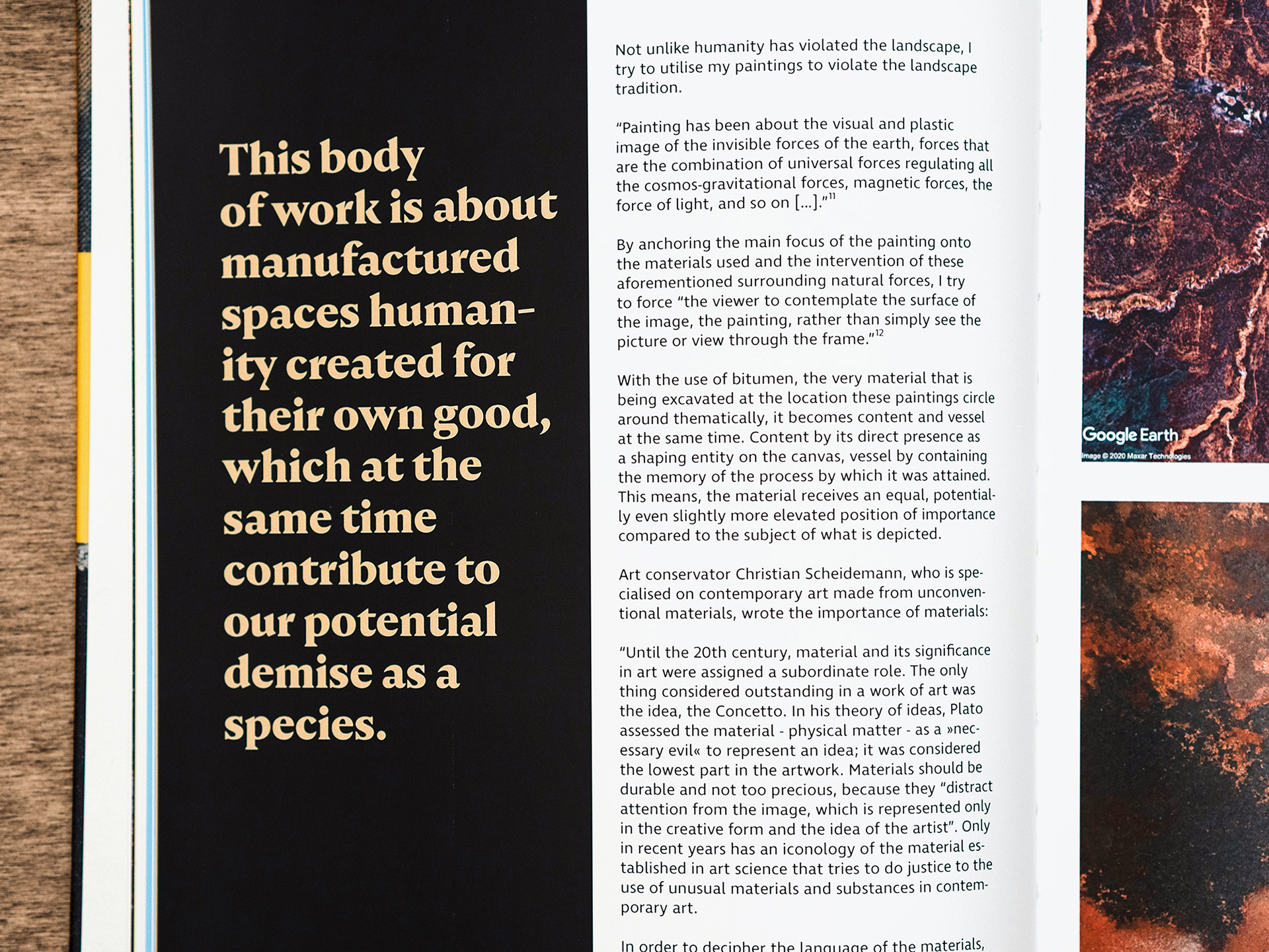 Catalogue including all 62 works from the series 'FUTURE LANDSCAPES' (2015-2020) along with explanatory texts, close-ups and making-of photos. 196 pages, printed on 200g/sqm paper, hardcover,